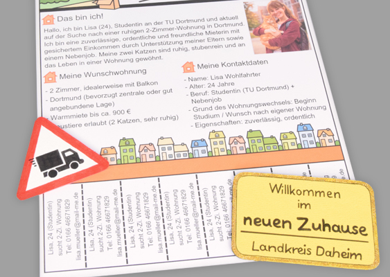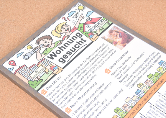 - Eine Möglichkeit: analoge Wohnungsgesuche. Klingt altmodisch, funktioniert aber. Im Kern ist es nichts anderes als ein physisches Instagram-Profil: ein kurzer, klarer Steckbrief mit Foto. Wer bin ich? Was suche ich?